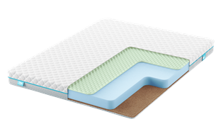 С одной стороны проложена экопена толщиной 12 см. Другая сторона изделия дополнена натуральным листом из кокоса высотой 2 см. Матрас выдерживает нагрузку до 110 кг.