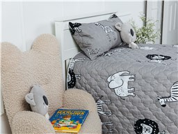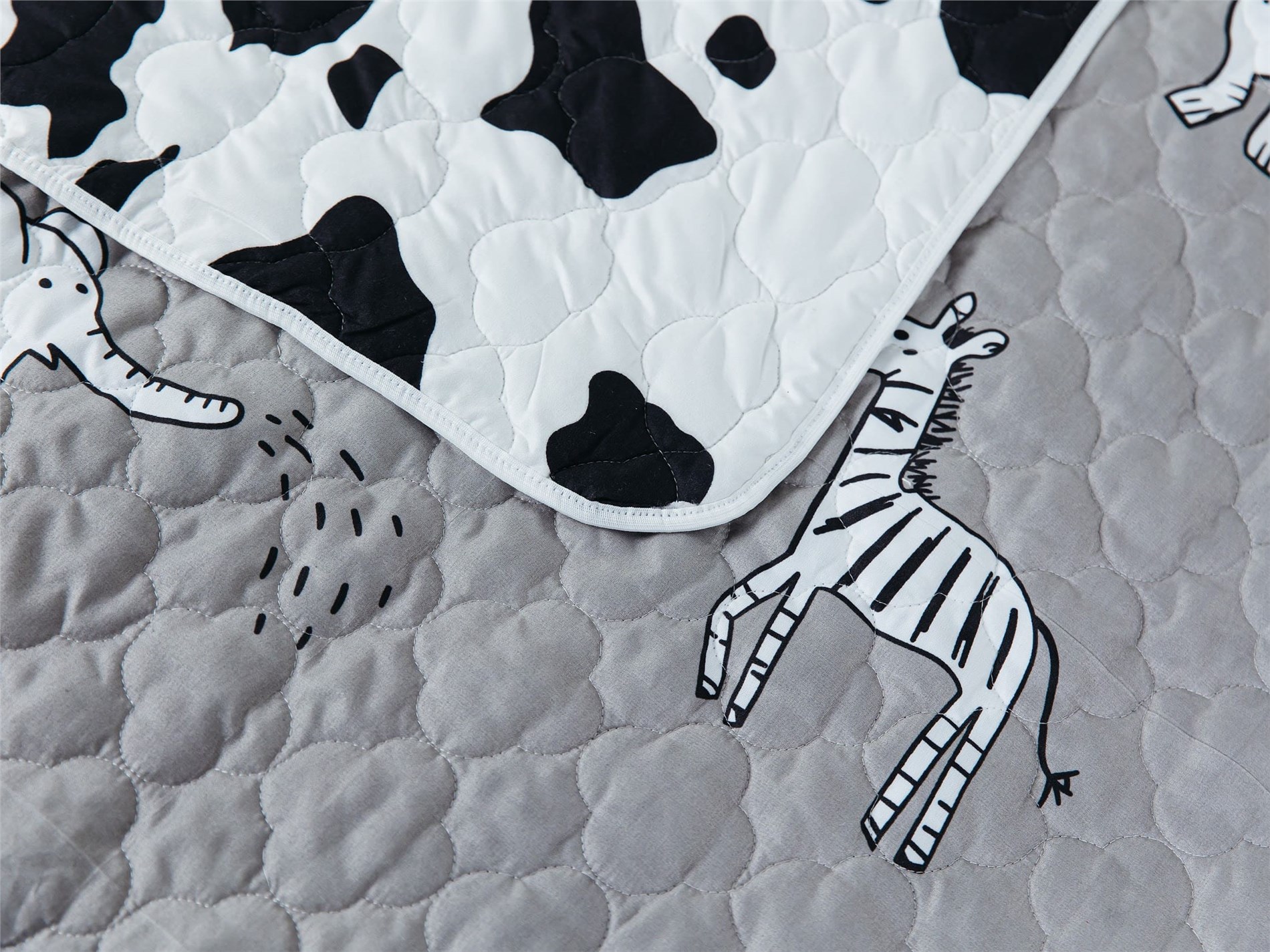 • Двустороннее покрывало: вторая сторона с чёрно-белым «пятнистым» принтом в стиле сафари.