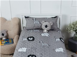Создайте атмосферу весёлого сафари прямо в детской комнате! С этим покрывалом сон превращается в увлекательное путешествие по саванне, где дружелюбные львы, жирафы, зебры и слоны сопровождают ребёнка в мире грёз.
