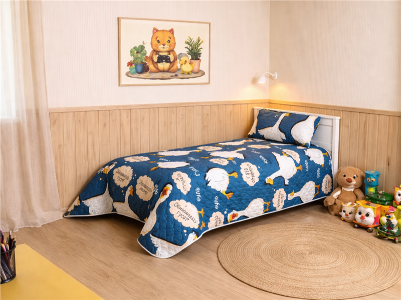 Покрывало «Гусь га-га» создаёт атмосферу тепла, уюта и хорошего настроения.