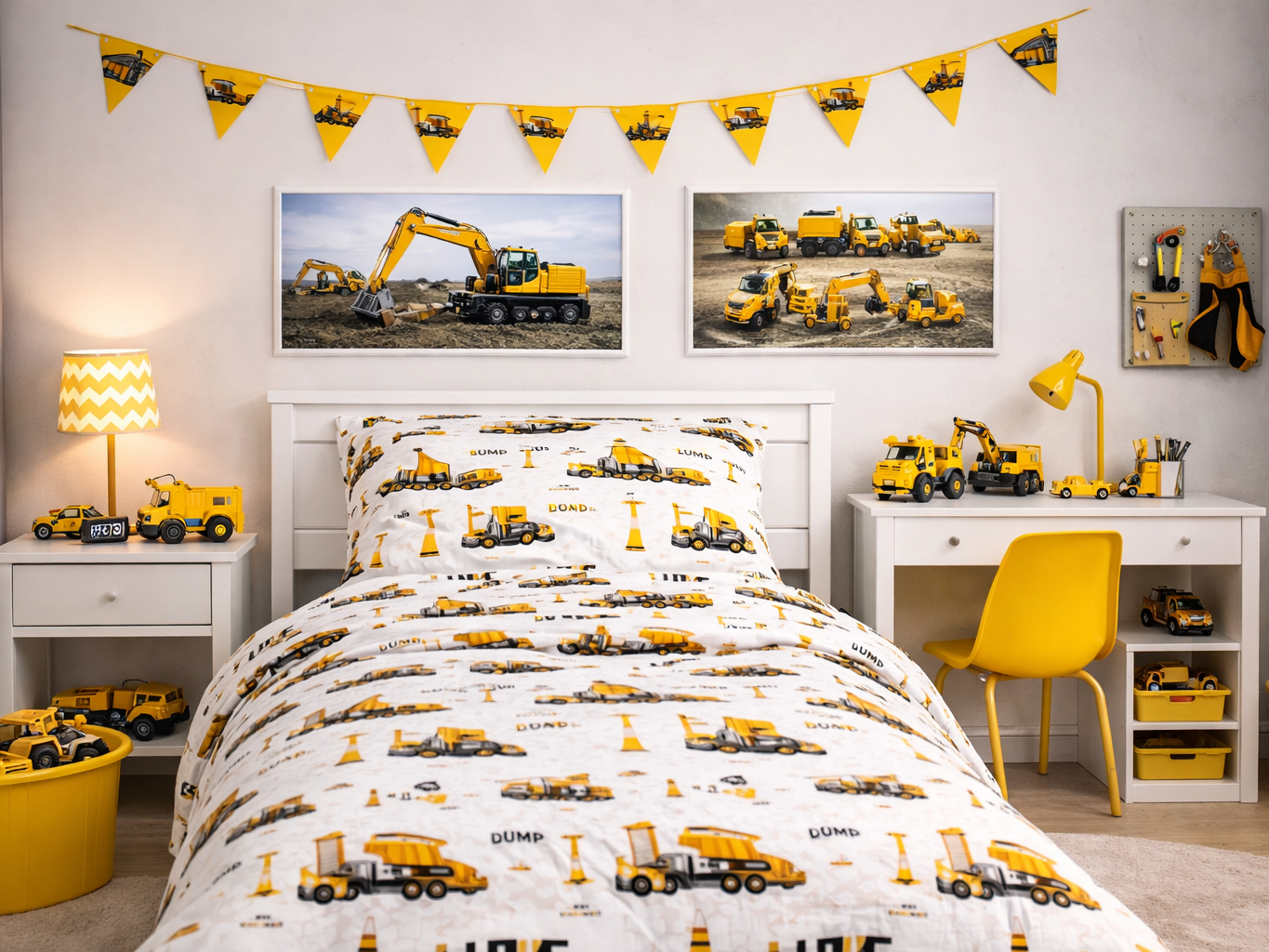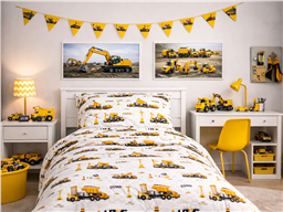 Яркие экскаваторы, самосвалы и подъемные краны пробуждают фантазию, вдохновляют на игры и делают детскую комнату живой, современной и очень уютной.