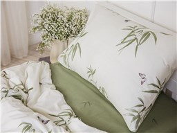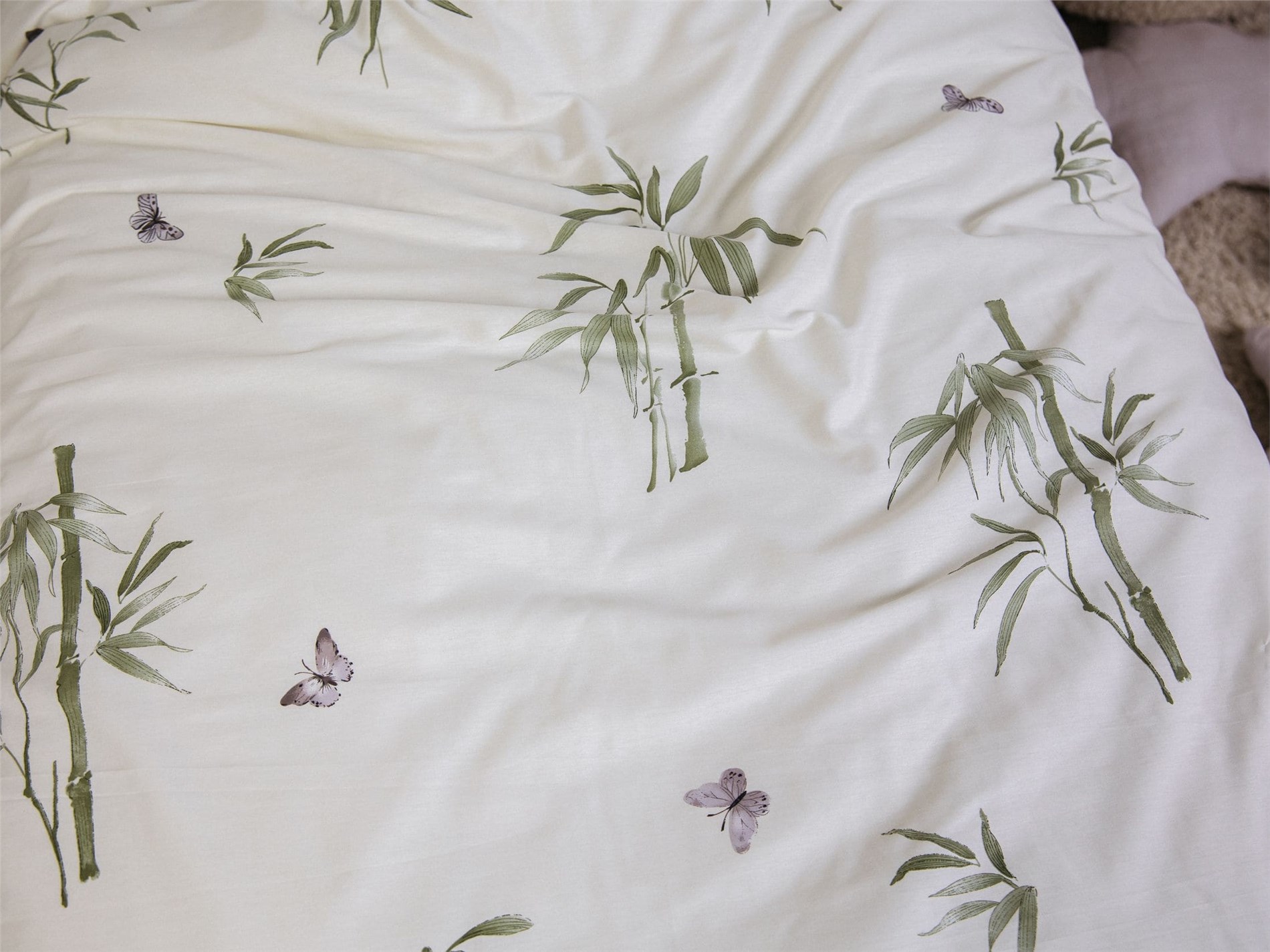 Гармония природы и нежности в вашем доме. Лёгкий шелковистый блеск, дышащий хлопок и утончённый принт с бамбуком и бабочками создают атмосферу спокойствия и свежести.