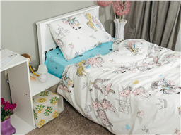 Каждая ночь превращается в сказку! На белоснежном фоне оживают розовые и жёлтые единороги, крошечные короны, замки и принцессы. Это бельё наполняет комнату нежностью, светом и мечтательной атмосферой.