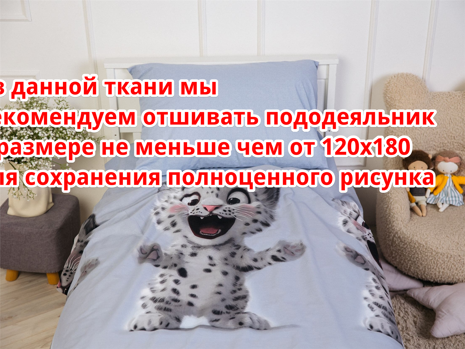 Нежный и весёлый комплект из поплина для детей, которые любят уют и милых зверят. “Snowy Smile” — это мягкость, улыбки и самые добрые сны под охраной забавного снежного леопарда.