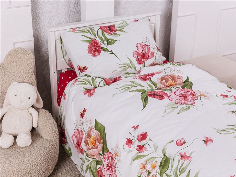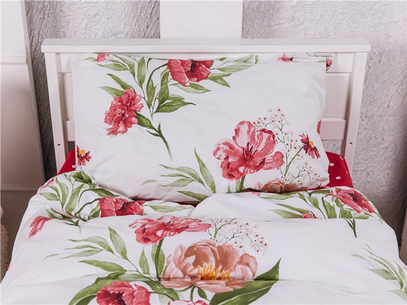 Погрузитесь в атмосферу цветущего сада вместе с комплектом постельного белья Bloomy Morning. Яркие пионы, маки, астры и бутоны на белоснежном фоне создают невероятно нежную, свежую и при этом живую композицию — словно утро в поле, наполненном ароматами и пением птиц.